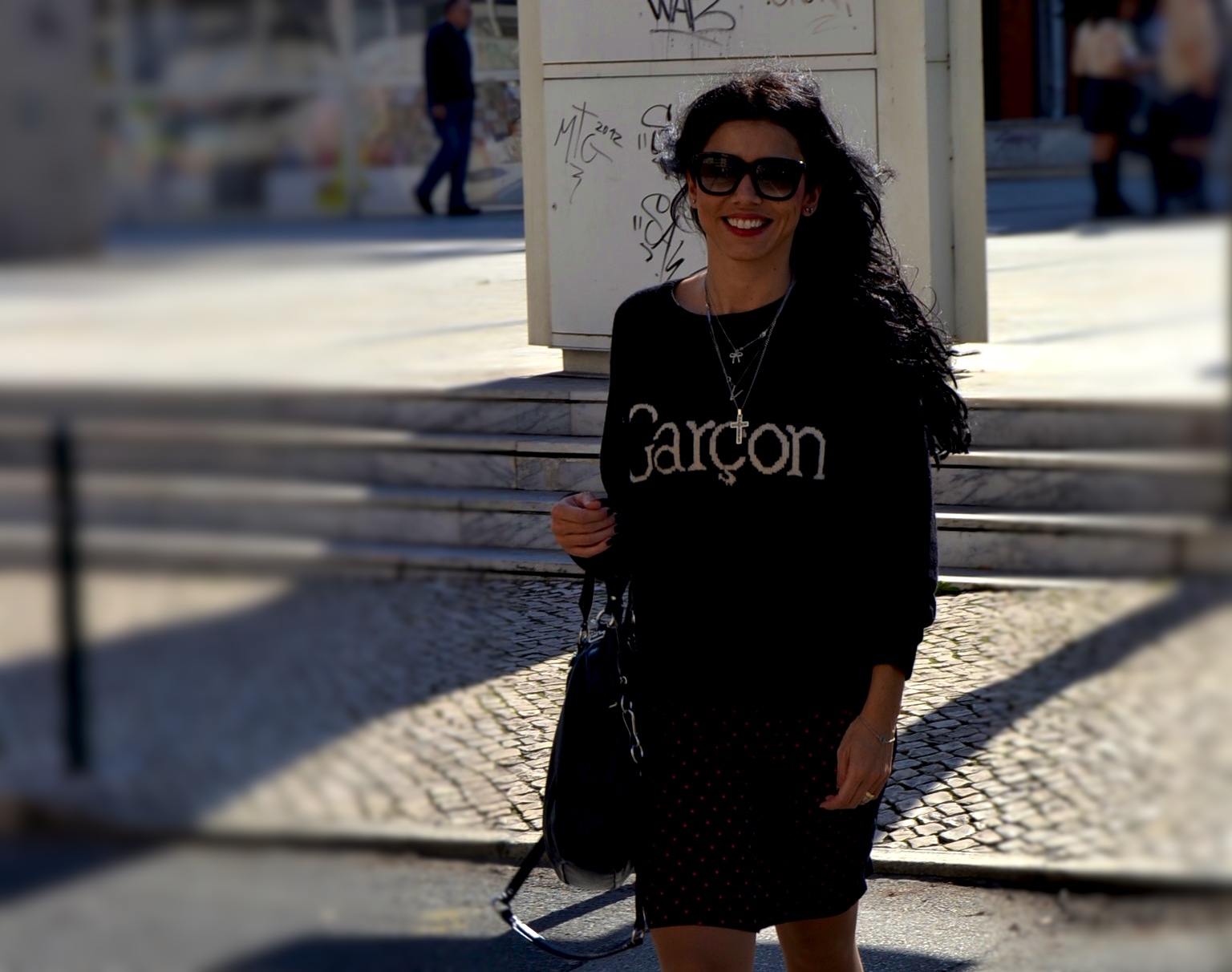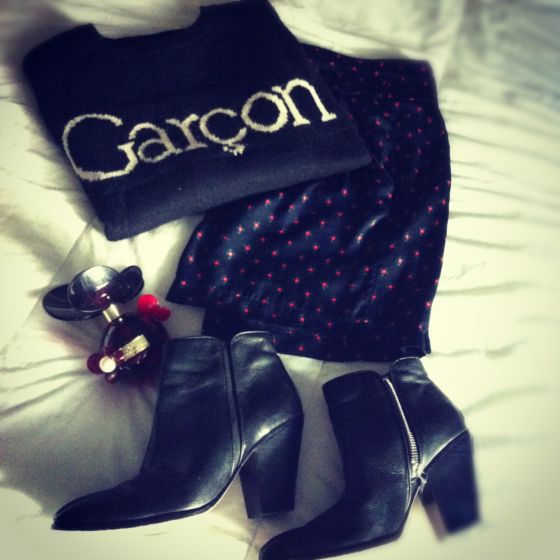 Camisola: Topshop; Saia: Mango SS12; Botas: dolce vita; Mala: Coatch; Óculos: Marc Jacobs; Perfume: Marc Jacobs Dot