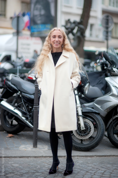 O post de hoje é sobre Franca Sozzani, a editora chefe da Vogue Itália. Com 62 anos, é dona de um estilo chiq, discreto, elegante, adequado à sua idade, mas sempre com o toque das tendências. Quando fotografada com topmodels, dá nas vistas (not easy!!) e até já tem uma barbie em sua homenagem. O seu cabelo é a sua imagem de marca e os casacos compridos uma das peças que mais usa.