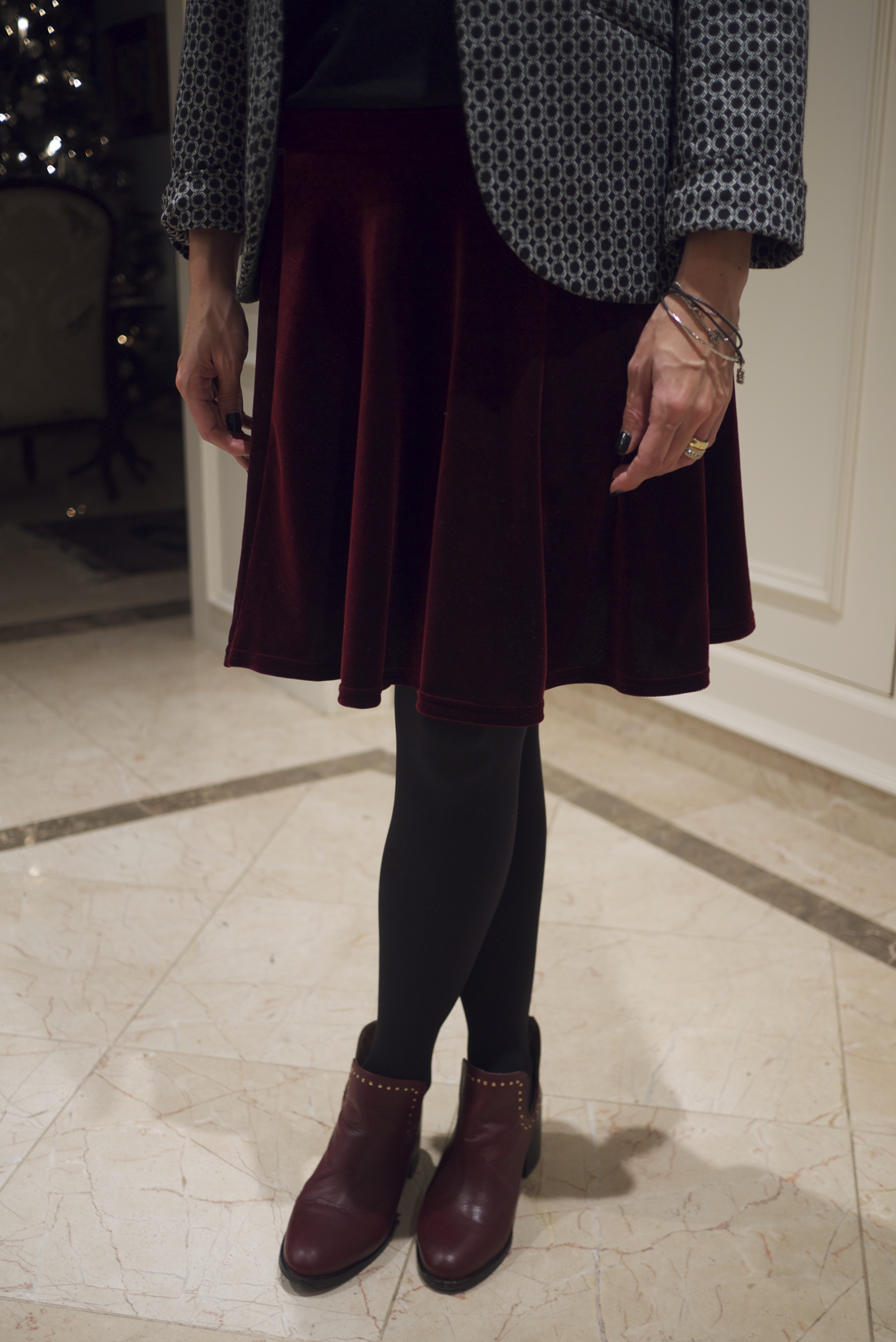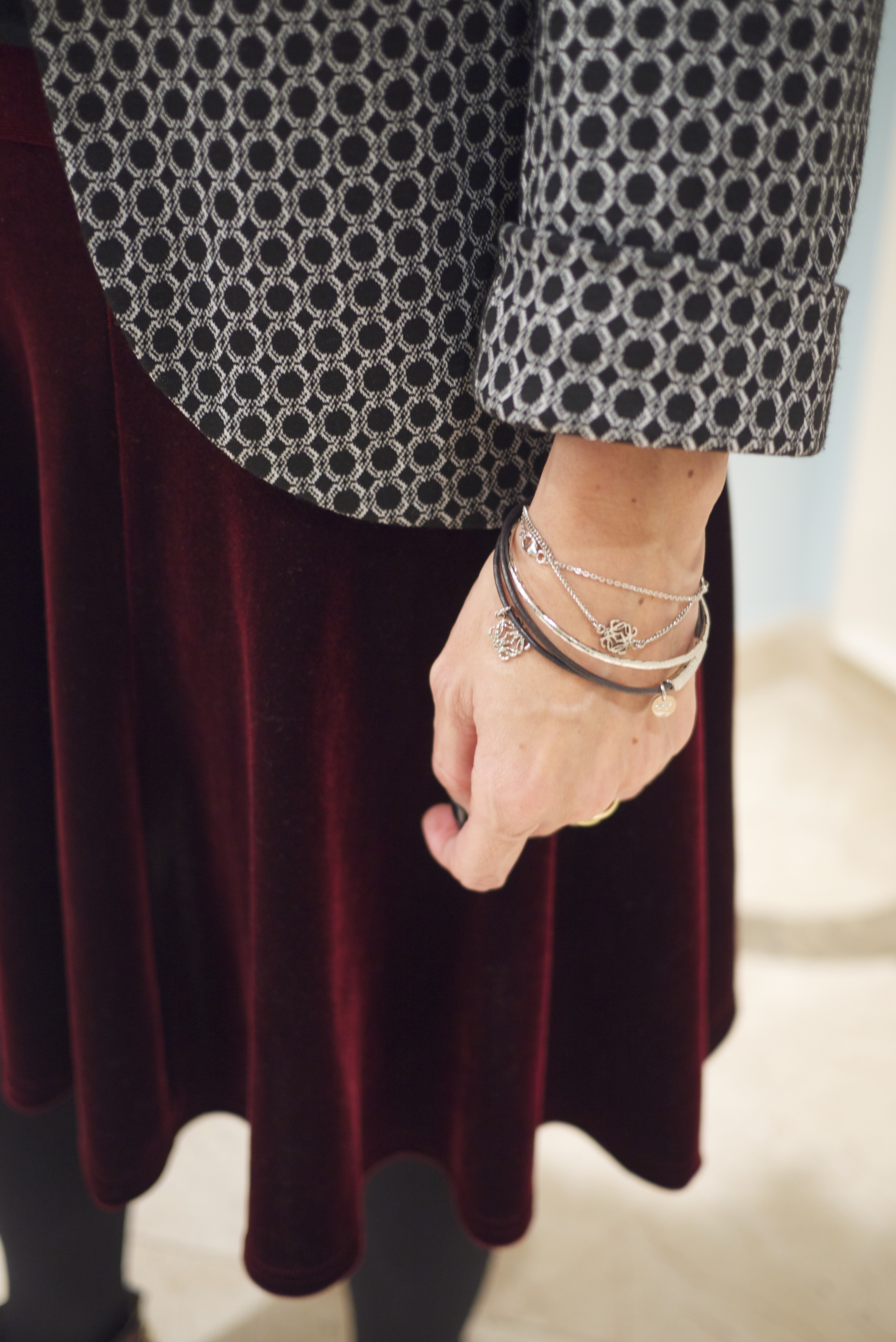 Blazer, saia e sapatos: Topshop; T-shirt – Zara; Pulseiras – Loewe