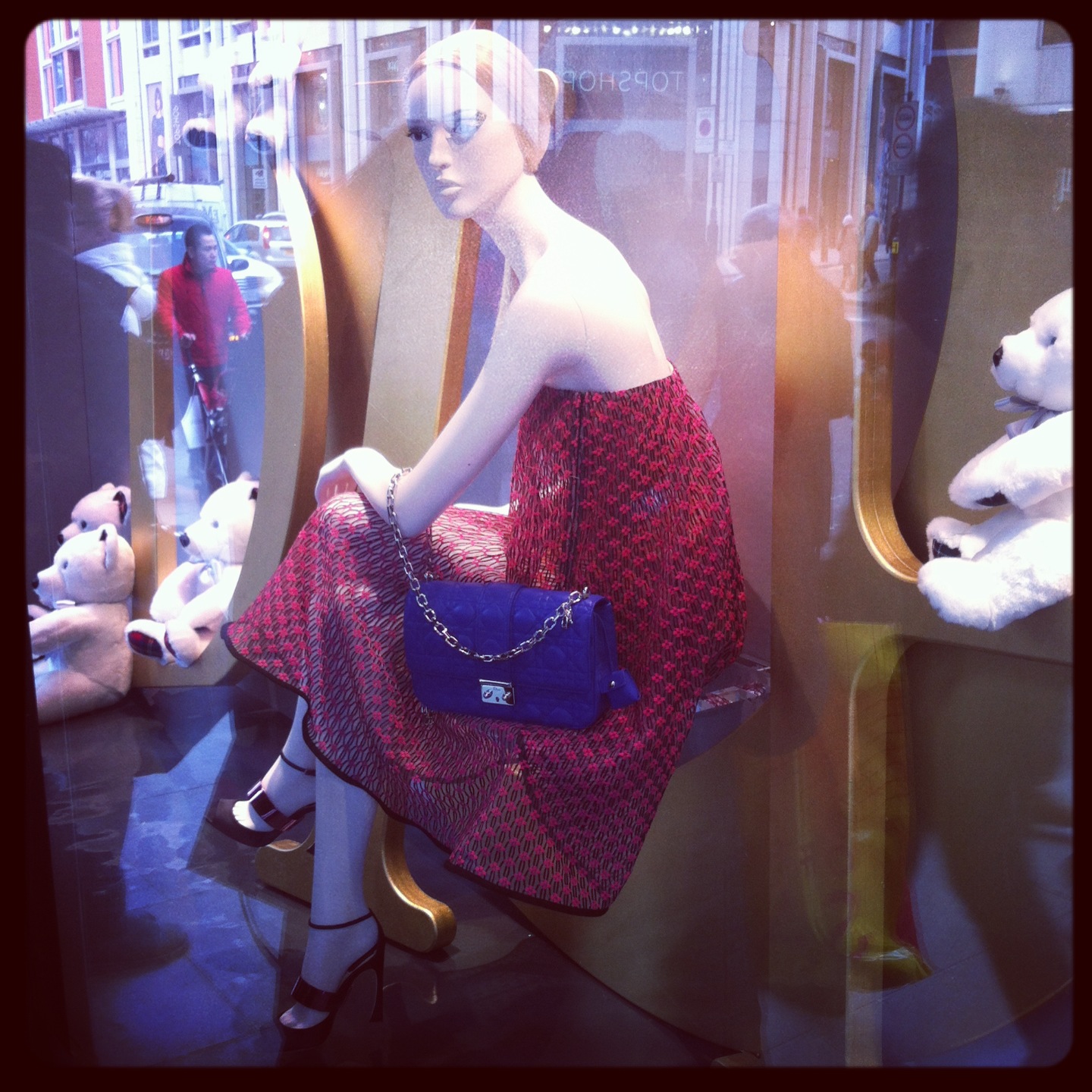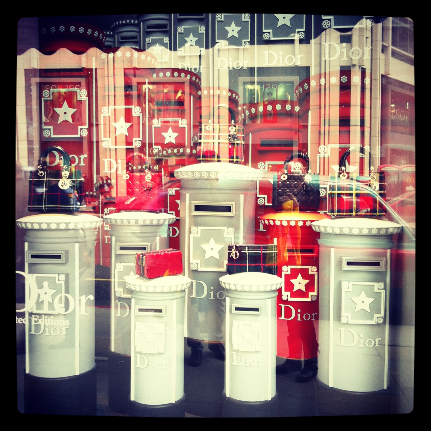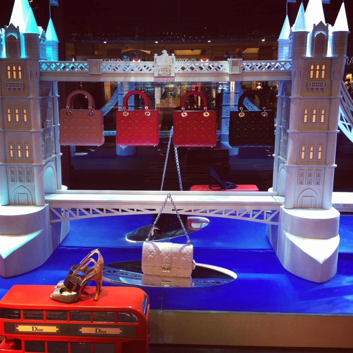 Harrods: O armazém está, até ao dia 13 de Abril, com uma exposição especial em parceria com a Dior. Todas as montras estão lindas com peças da colecção Dior Primavera/Verão 2013. No 4º piso existe mesmo uma exposição da marca onde pudemos ver, por exemplo, vestidos usados por Elizabeth Taylor e Audrey Hepburn (!!!), o vestido criado por John Galliano para a campanha do perfume J´adore ou um casaco criado por Christian Dior em 1947, para a famosa colecção “New look”!
