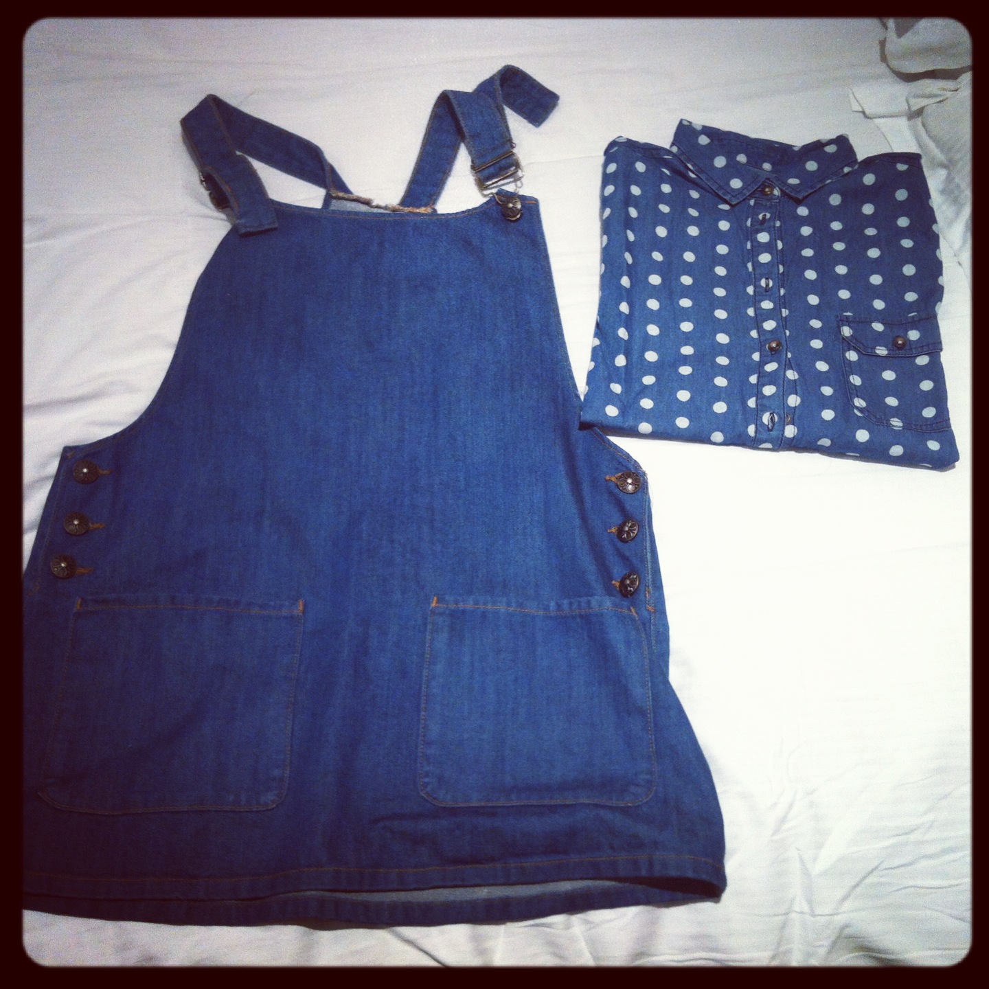 Comprei a t-shirt, o macacão saia e camisa às bolas.