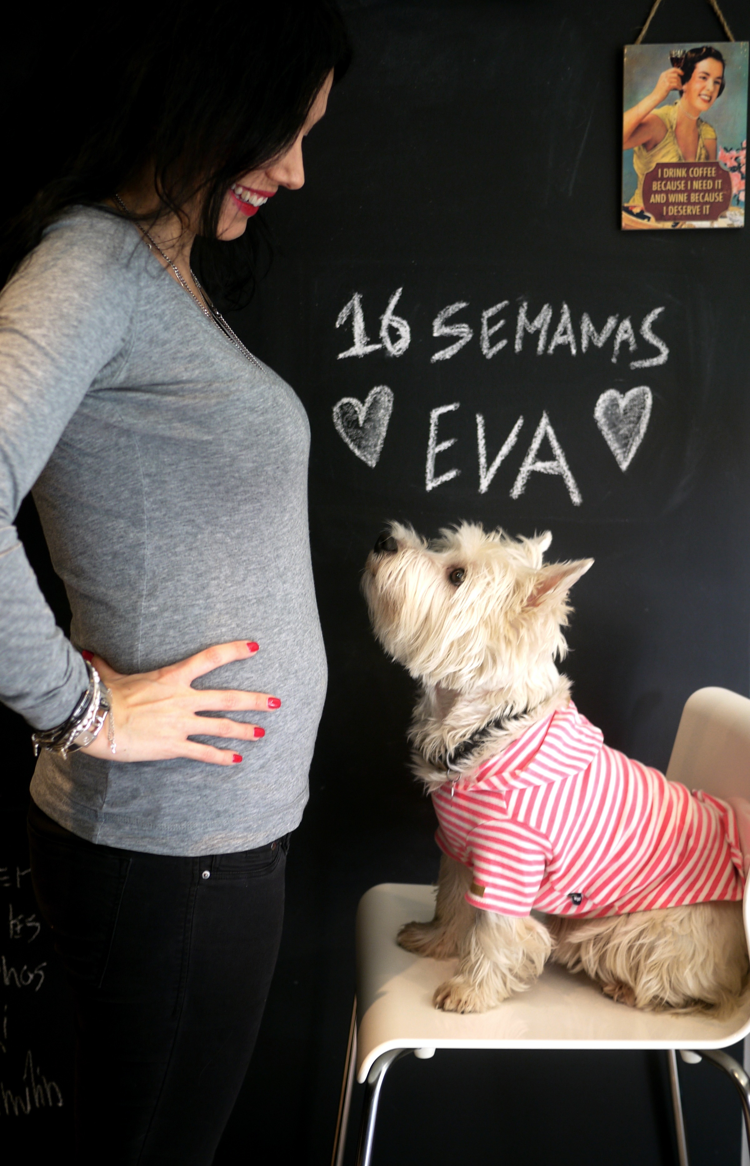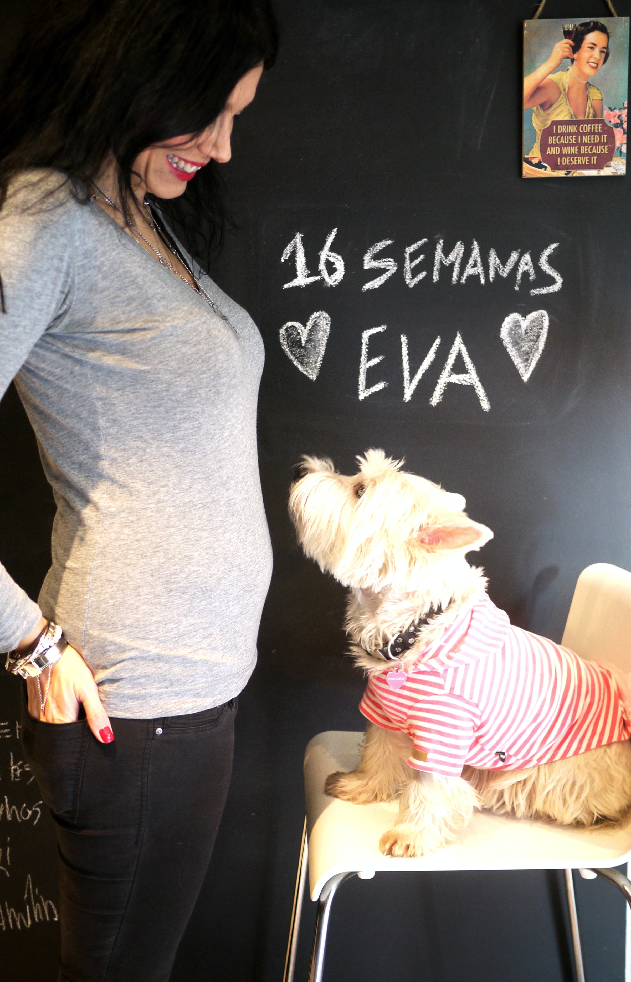 12. Vai ser ótimo! A Luisínha estranhou no início mas agora já acha piada quando a Bia estica a mãozinha para lhe dar festinhas! Estás linda, que máximo!