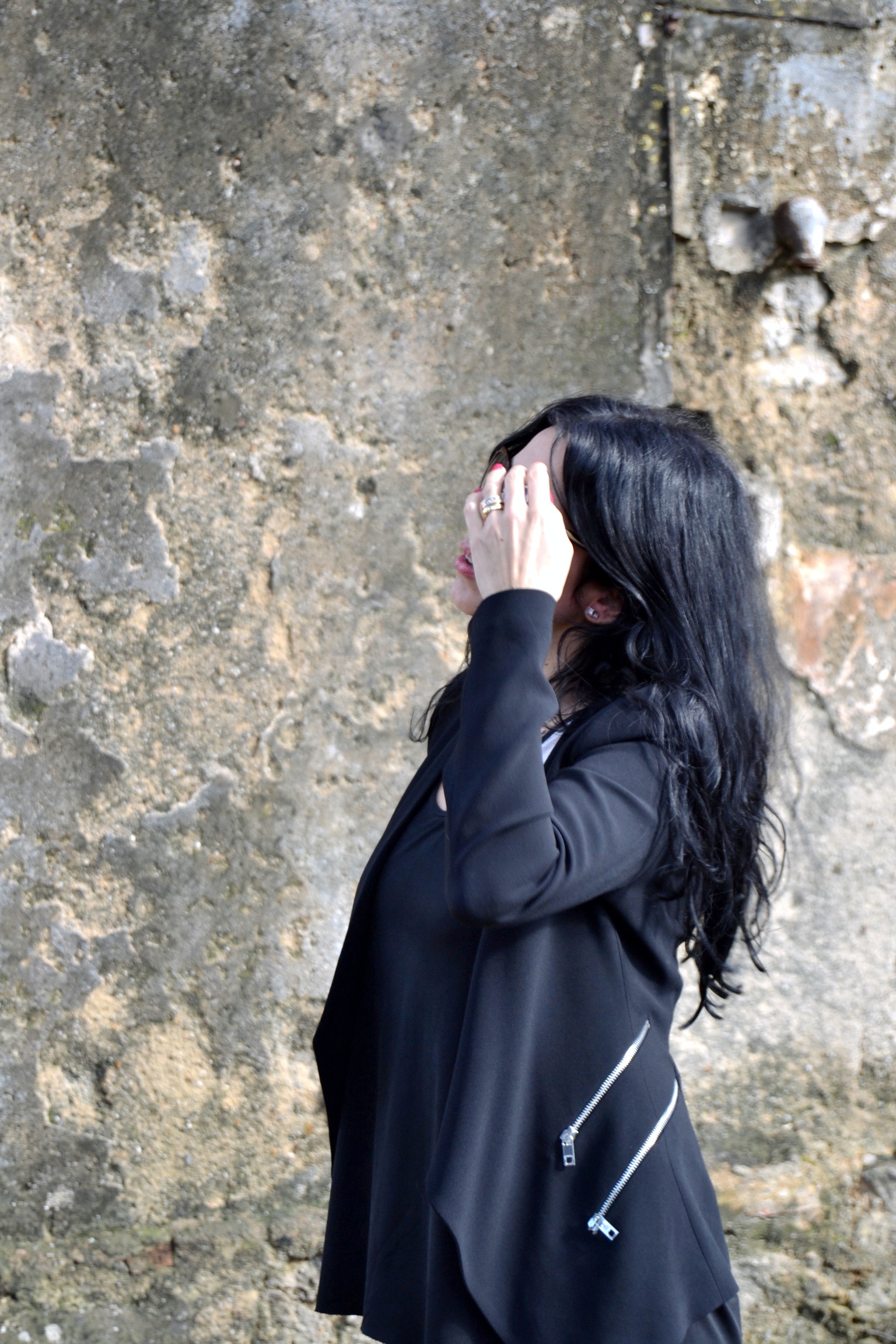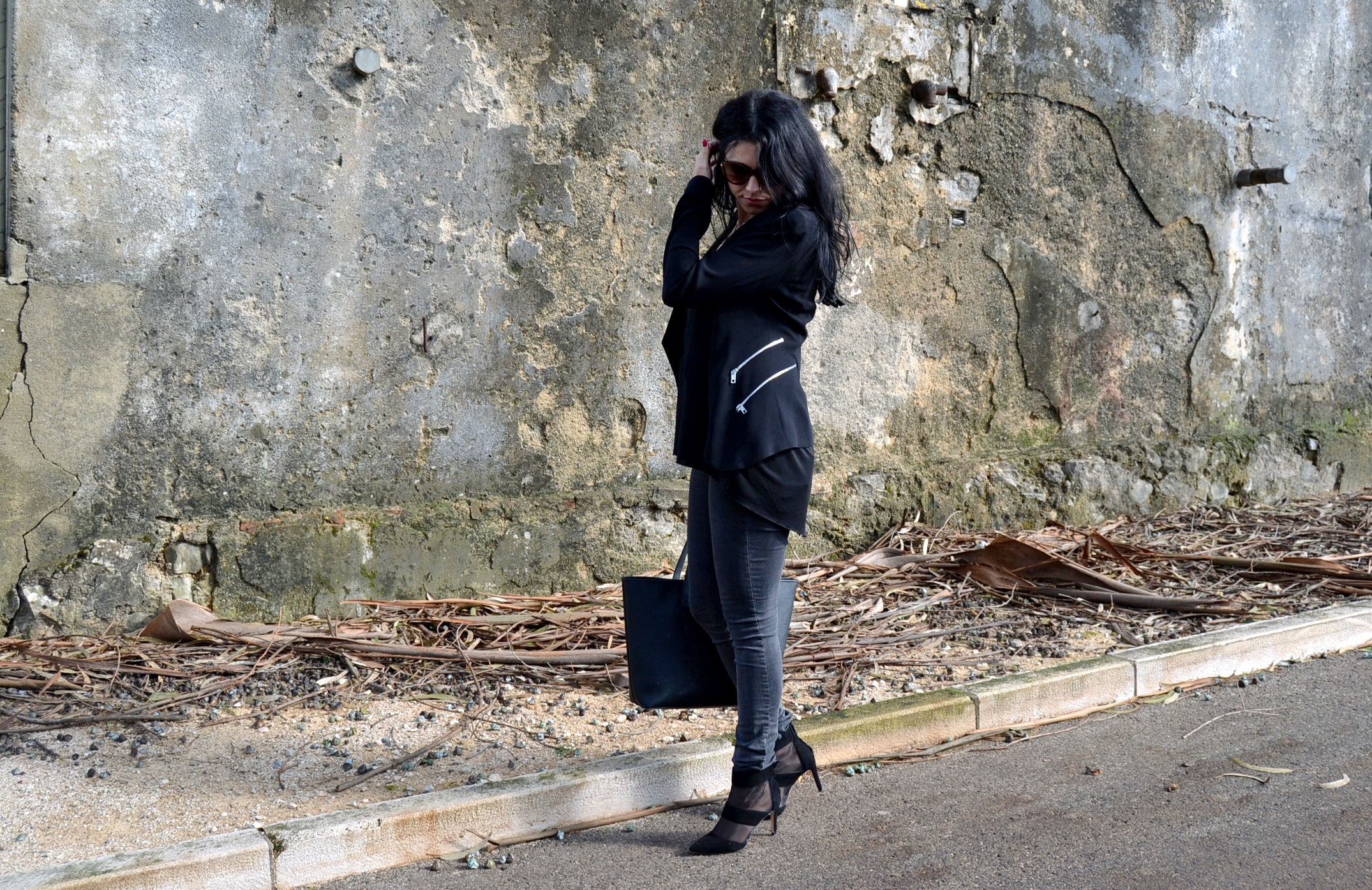 Os fechos de lado e na diagonal criam o efeito de cintura definida e emagrecem a figura. O que, aliado à sua comodidade e à sua cor, o tornam aquela peça quem me apetece vestir todos os dias!